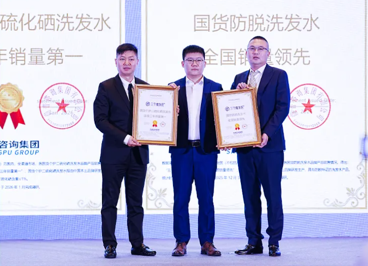 在三个魔发匠十周年庆典上,其核心产品二硫化硒洗发水荣获尚普咨询认证“国货个护二硫化硒洗发水连续三年销量第一” [1],2023年-2025年全渠道累计销售2298万瓶;可比落·防脱精华洗发乳则以2025年全渠道销量突破706万瓶的亮眼成绩,获得了“国货防脱洗发水全国销量领先”认证[2],备受市场与消费者认可,为品牌的跨界营销打下了坚实的产品基础。